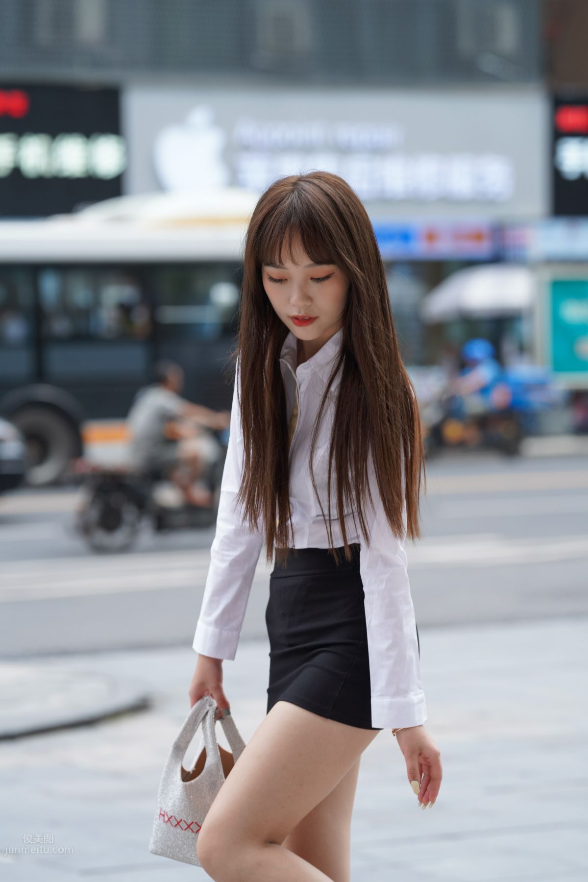 [魔镜街拍] 014 超性感白色包臀裙美女